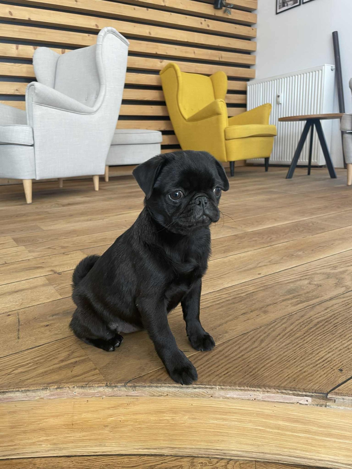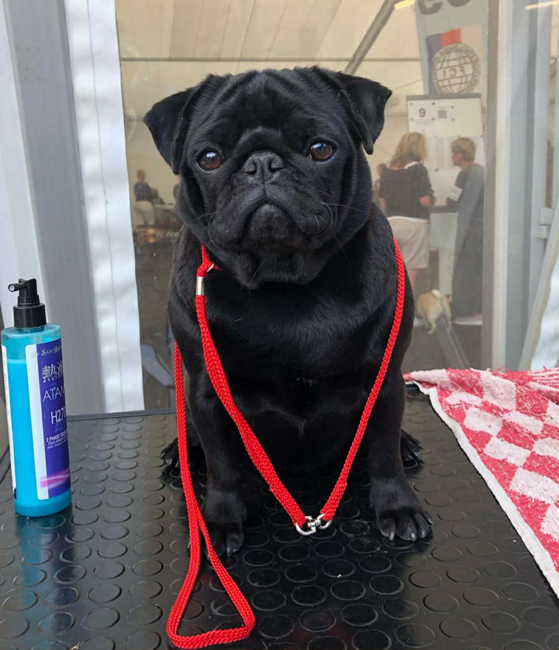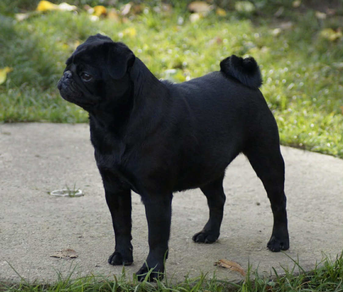 U černého mopse: čistě černá, bez jakýchkoli znaků nebo příměsí.